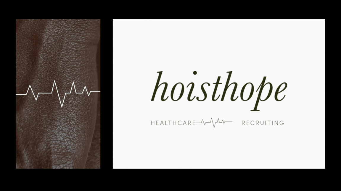 Our approach to Hoisthope’s visual identity centred on creating a modern yet timeless wordmark paired with a monogram submark. We chose a classic serif typeface to establish an air of professionalism, softened by organic and flowing lines that reflect the brand's warmth and human-centric mission. The wordmark’s tagline, "Healthcare Recruiting," incorporates a subtle ECG line—a thoughtful nod to the healthcare industry.